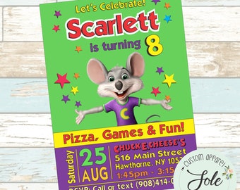 Chuck E Cheese Invitation Chuck E Cheese S Birthday Etsy Chuck E Cheese Personalized Birthday Invitations Chuck E Cheese Birthday